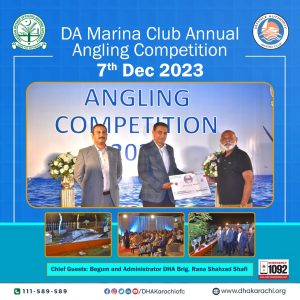 DA Marina Club Annual Angling Competition 2023 celebrated winners at a grand Prize Distribution Ceremony followed by a delightful dinner. Col Zahid Abbas SI(M) (Retd), Secy DAMC welcomed Chief Guests Begum & Brig Rana Shahzad Shafi – Administrator DHA Karachi.