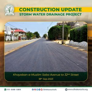 As of the 18th September 2023, here is an overview of the construction of Storm Water Drainage Project. We aim to complete the project quickly to minimize inconvenience to DHA residents and commuters. We will keep you updated on all